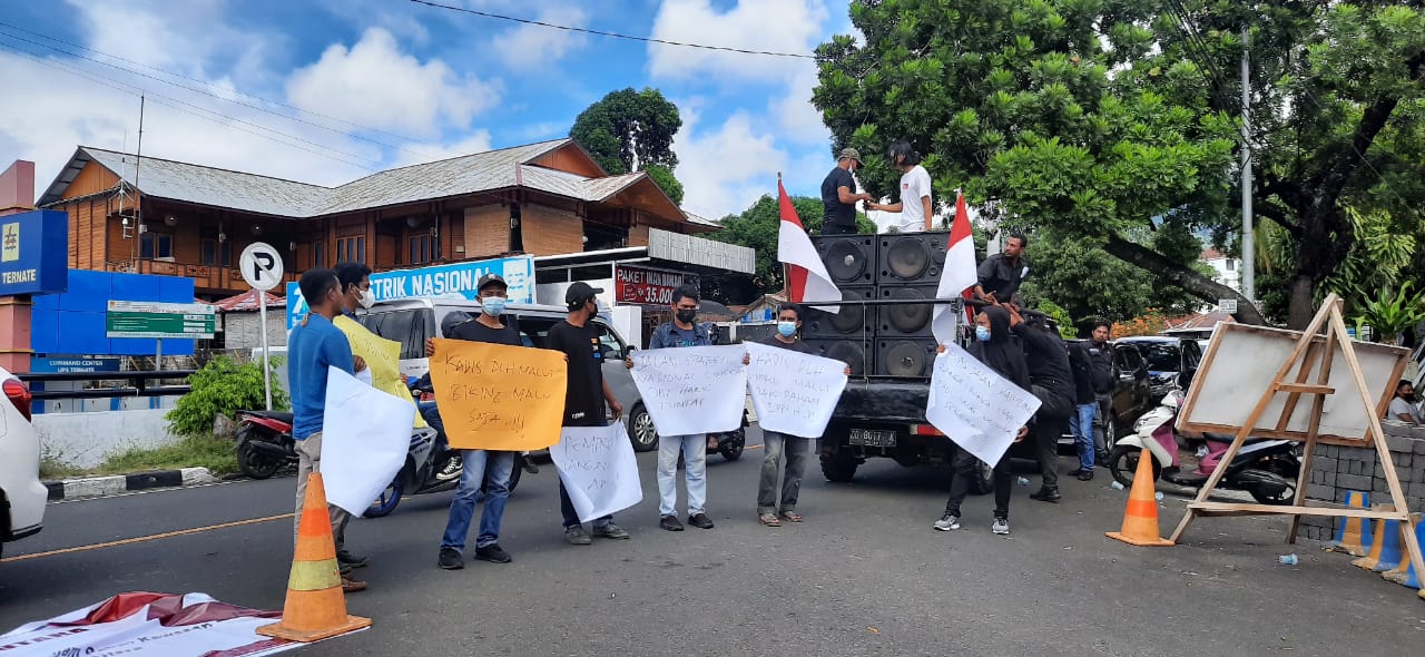 BORERO.ID TERNATE- Aliansi Masyarakat Halmahera Selatan (AMHS) bersikap soal jalan lingkar Pulau Obi hingga sejuah ini menjadi polimik dan menyita perhatian publik Maluku Utara. Sikap AMHS dituangkan dalam aksi di depan kediaman Gubernur di Kota Ternate, Senin (6/9/2021).