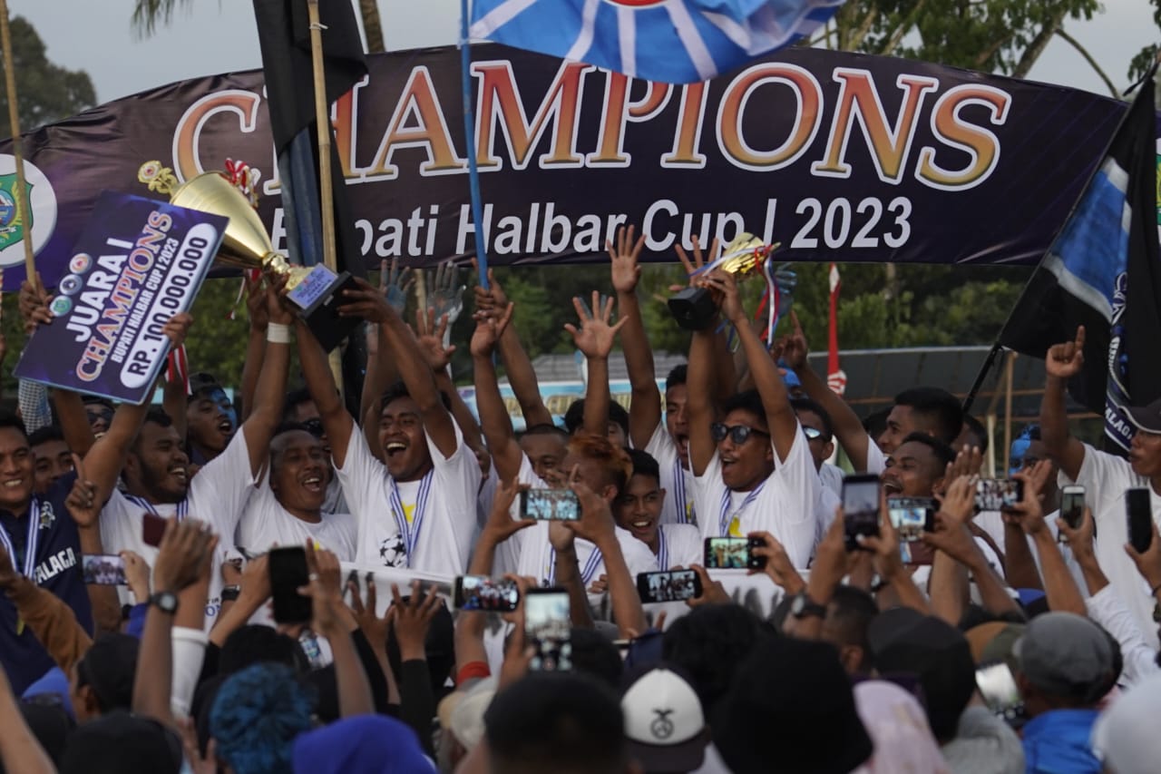 BORERO.ID HALBAR–— Tim Gental Setia dari Kecamatan Ibu keluar sebagai juara di Bupati Cup I Halmahera Barat tahun 2023. Laga final ini berlangsung di lapangan Kompi B Desa Ake Lamo, Kecamatan Sahu Timur, Senin (25/9/2023) kemarin.