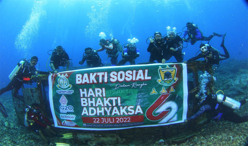 Selain Baksos, juga melakukan free Diving kegiatan menyelam di bawah air dengan membentangkan spanduk bertulisan Hari Bhakti Adhiyaksa ke 62.