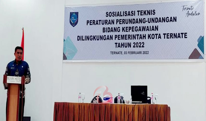 BORERO.ID TERNATE – Badan Kepegawaian dan Pengembangan Sumber Daya Manusia Daerah (BKPSDMD) Kota Ternate melaksanakan kegiatan Sosialisasi Tekhnis Peraturan Perundang-Undangan Bidang Kepegawaian di lingkup Pemkot Ternate, Kamis (3/2/2022).
