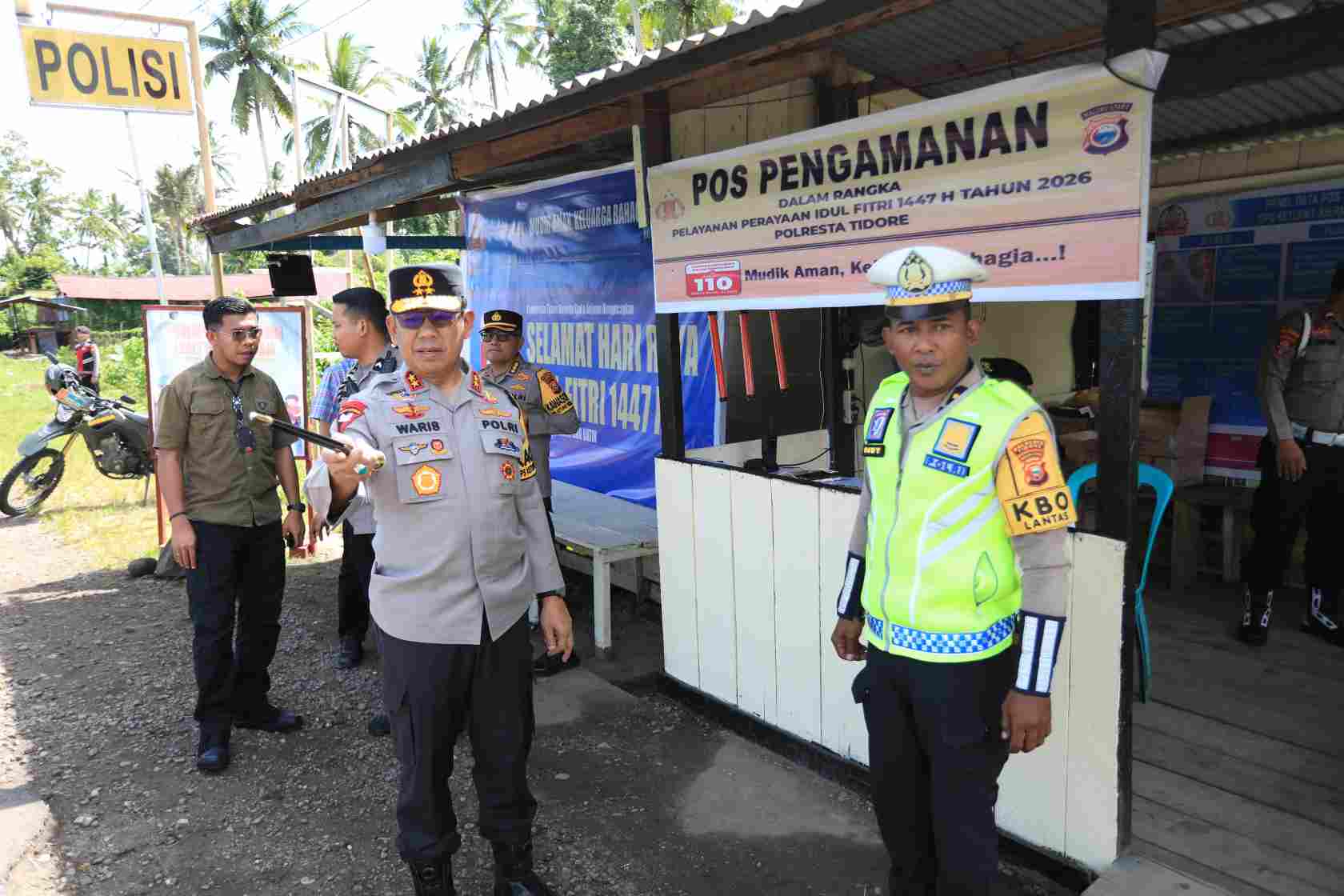 BORERO.Id – Kepala Kepolisian Daerah Maluku Utara, Irjen Pol. Waris Agono, didampingi para pejabat utama Polda, meninjau Pos Operasi Ketupat Kie Raha 2026 Polresta Tidore Kepulauan pada Kamis 19 Maret 2026.