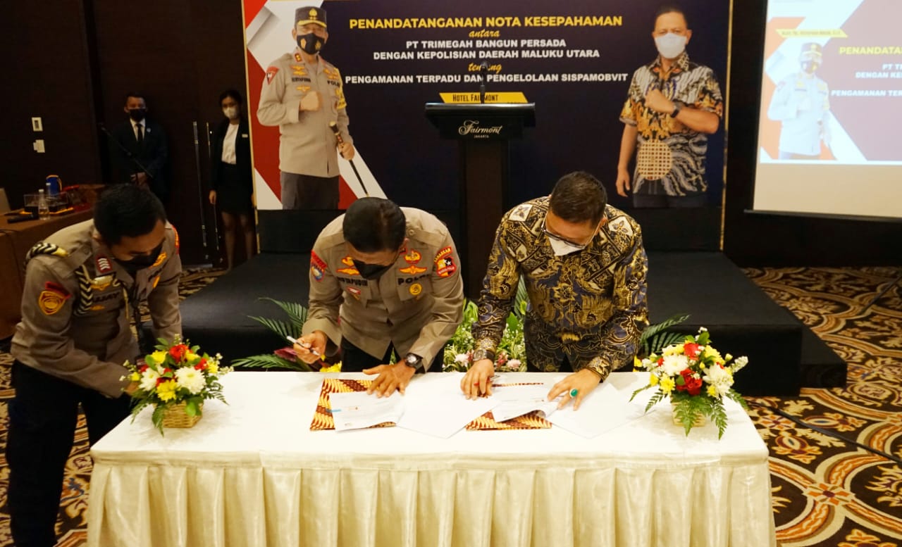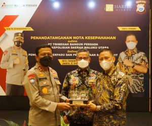BORERO.ID- Kepolisian Daerah (Polda) Maluku Utara (Malut) dan Harita Nickel melakukan penandatanganan Nota Kesepahaman (Memorandum of Understanding – MoU) bersama terkait pengamanan terpadu dan pengelolaan sistem pengamanan objek vital (Obvit) nasional. Melalui siaran pers kepada media ini penandatanganan MoU itu dilakukan langsung oleh Kapolda Malut Irjen Pol Risyapudin Nursin dan Direktur Utama Trimegah Bangun Persada (TBP), Donald J Hermanus yang juga mewakili manajemen Harita Nickel di Jakarta pada 1 April 2021.