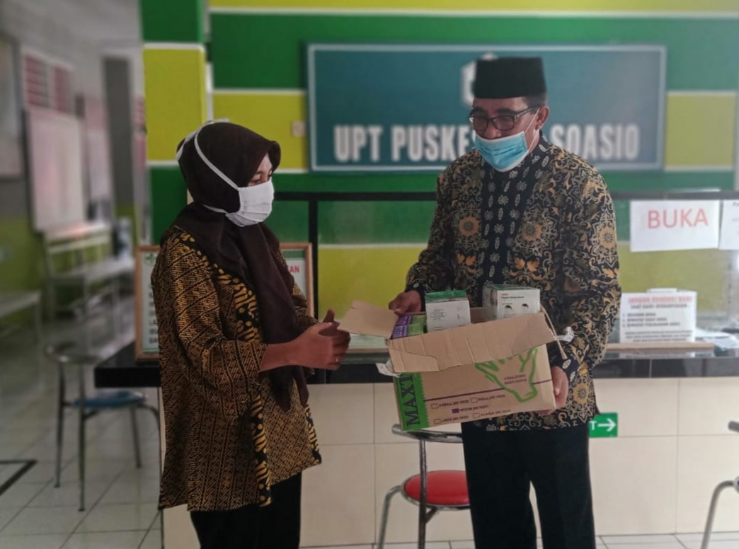 Bantuan yang di serahkan berupa Hansani Tiser, Sarung Tangan medis, Masker, obat – obatan dan vitamin. (Lee)
