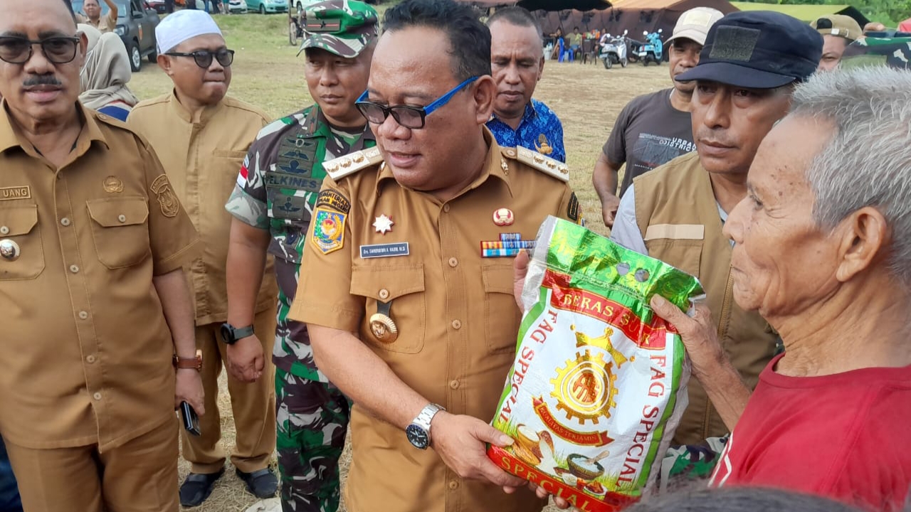 BORERO.ID HALBAR— Pj Gubernur Provinsi Maluku Utara, Samsuddin A Kadir, mengunjungi pengungsi akibat letusan gunung Ibu di Kabupaten Halmahera Barat (Halbar), Senin (20/5/2024) kemarin.